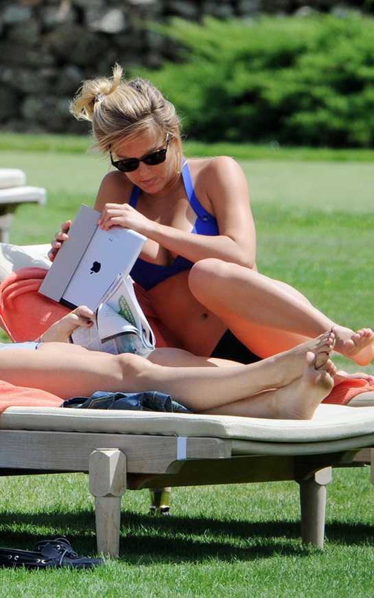However, there was no sign of her rumoured new boyfriend David Fisher today, as Bar Rafaeli chilled out on a sun lounger and chatted to friends. The pair have been spotted enjoying each other's company on the Italian island, strolling around the stunning city of Porto Cervo. Bar announced her split from Leonardo in May and has since been linked to several other men including Israeli basketball player Omri Casspi before being spotted with David.